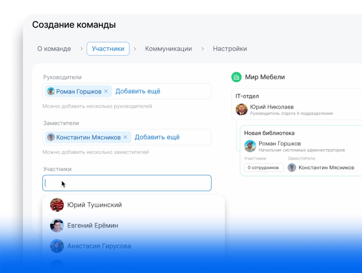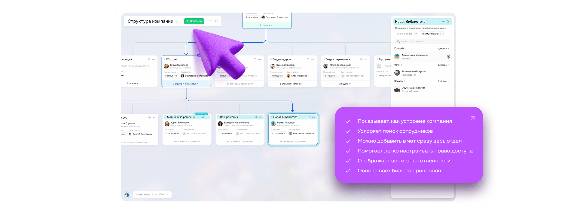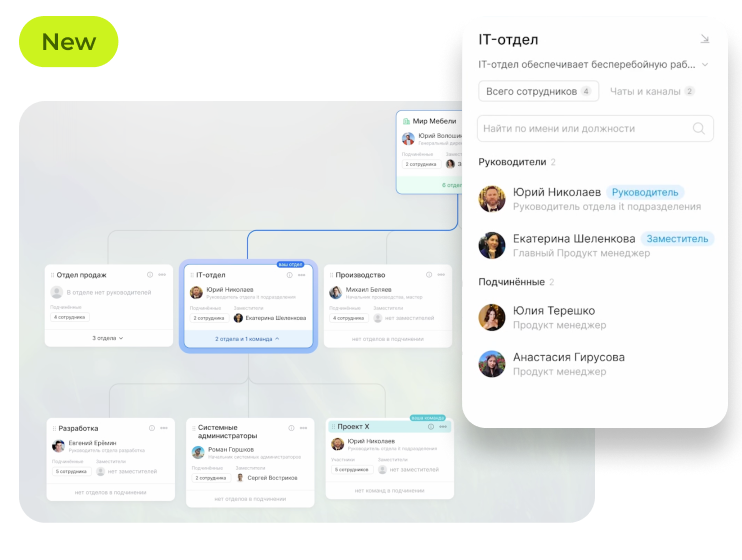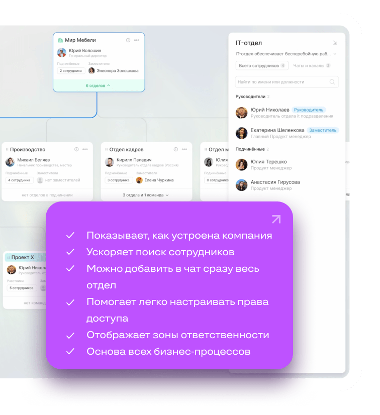 Объединяйте людей из разных отделов для работы над проектами — это легко можно сделать в структуре.