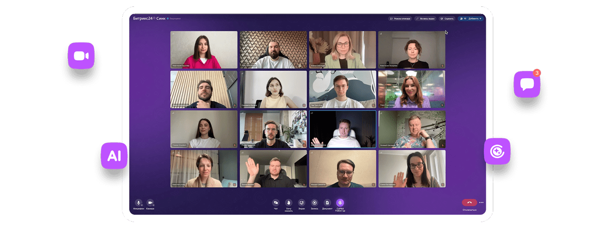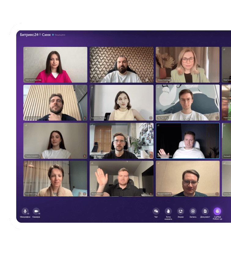 Где бы вы ни были, проводите видеовстречи и совещания прямо с телефона. И будьте уверены, входящий — не спам и не мошенники, потому что вам звонят в Битрикс24.